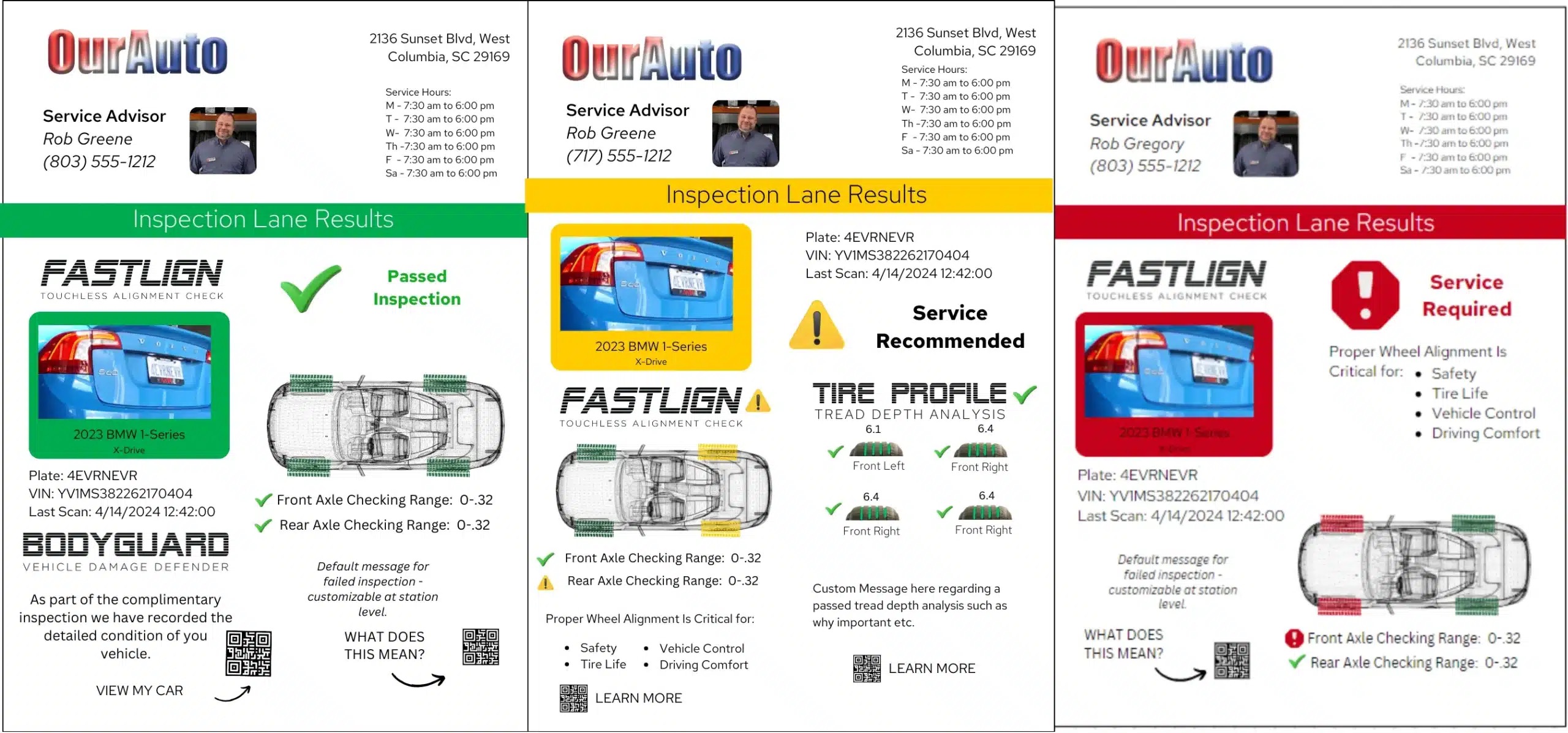 The alignment analysis is instantly made available to the service advisor on their workstation or through a print out that presents vehicle health data to your customers easily.