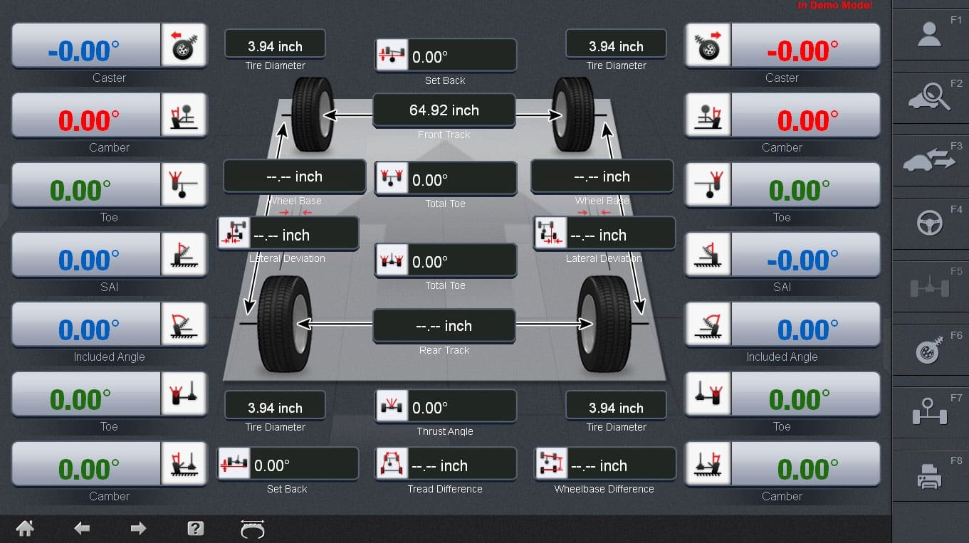 Our aligner features a user-friendly and powerful software interface to guide the technician through the service. Use this screen to review front and rear specifications together to better understand your customers vehicle.